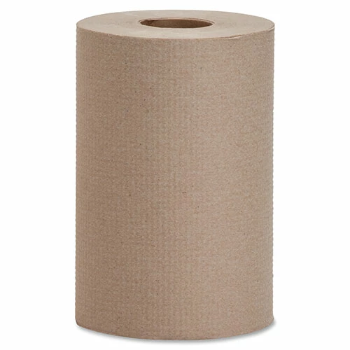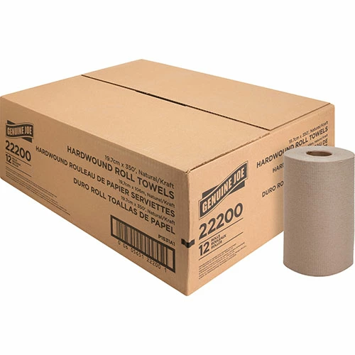 Hardwound Roll Towels offer a high capacity to provide storage space, maintenance and labor savings vs. folded towels. Heavily embossed design provides a better feel and aid in absorbency. 2″ core size is compatible with most universal dispensers. Perfect towel solution for high-traffic restrooms. Towels are made with a high percentage of recycled material.