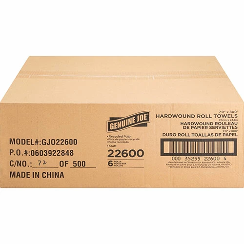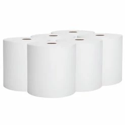 Hardwound Roll Towels offer a high capacity to provide storage space, maintenance and labor savings vs. folded towels. Heavily embossed design provides a better feel and aid in absorbency. 2″ core size is compatible with most universal dispensers. Perfect towel solution for high-traffic restrooms. Towels are made with a high percentage of recycled material.