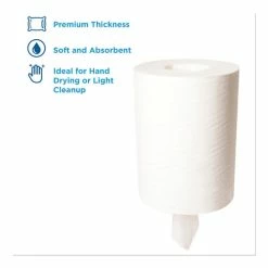 Towels dispense singly. Absorbent two-ply. 8 3/5″ dia. roll. 7.3 x 15 sheets. Towels have improved brightness, softness and core stability.
